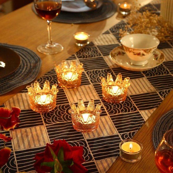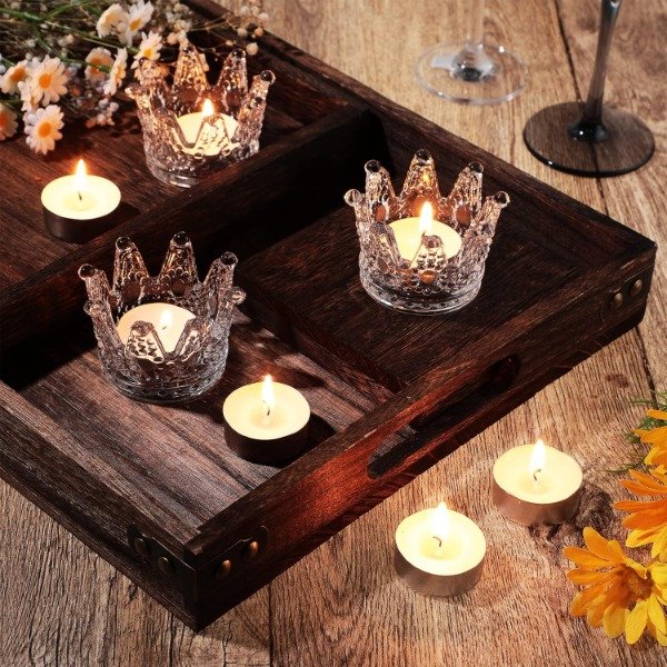 Porta vela de cristal con corona x1